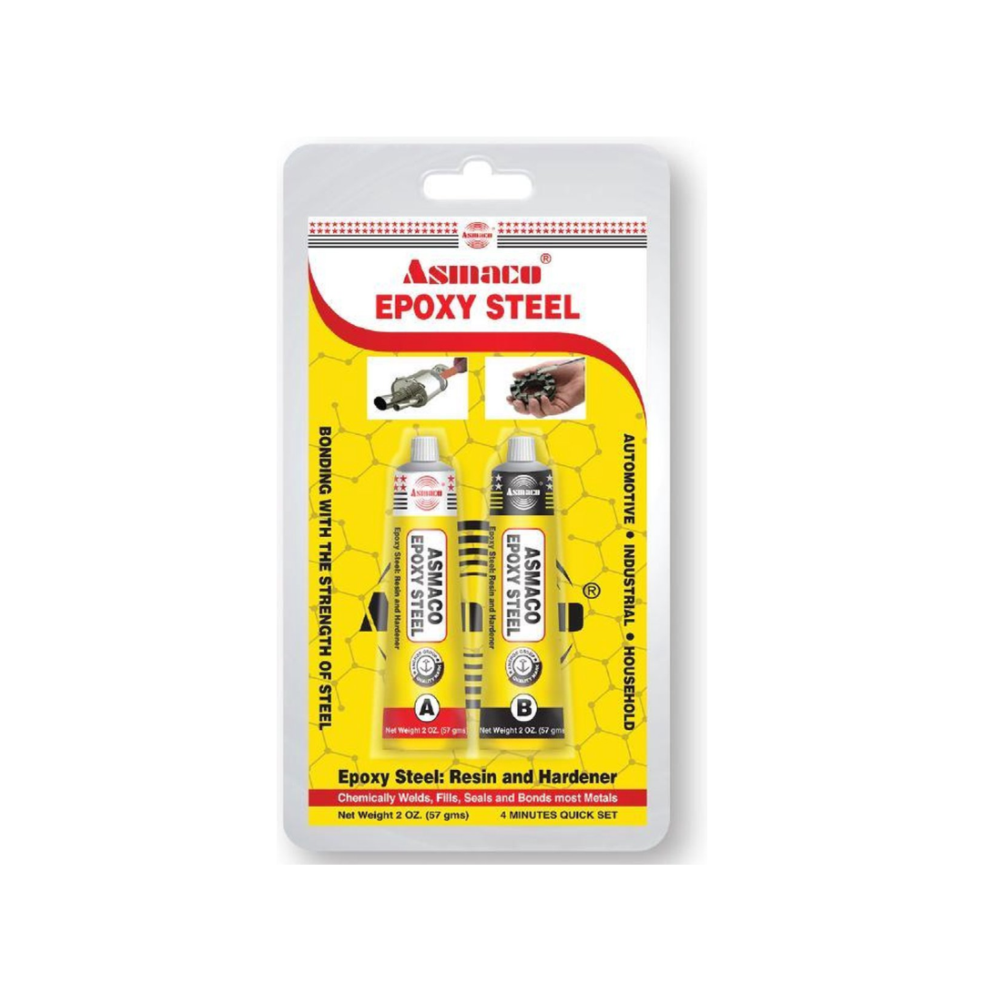 Asmaco Эпоксидный стальной клей — двухкомпонентный клей, который используется для ремонта и общего применения с металлическими поверхностями. Является надёжной альтернативой сварке и обеспечивает прочное соединение при нормальной температуре окружающей среды. Подходит для ремонтных и строительных работ, где требуется высокая прочность.