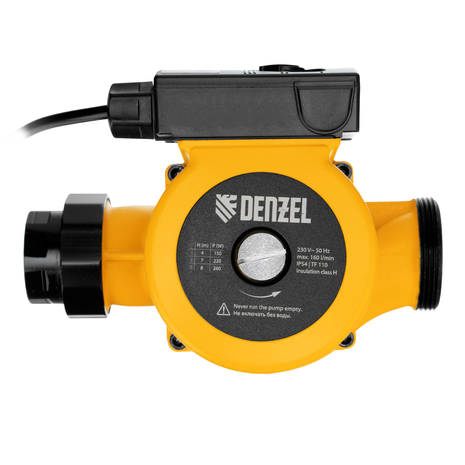 Циркуляционный насос Denzel CP32-8 с кабелем длиной 1 м имеет монтажную длину 180 мм и обеспечивает напор до 8 м, максимальный объем перекачиваемой жидкости составляет 160 л/мин. Устройство обеспечивает непрерывное движение горячей воды температурой до 110 °C по трубопроводу. Насос позволит организовать эффективную систему теплоснабжения загородного дома.