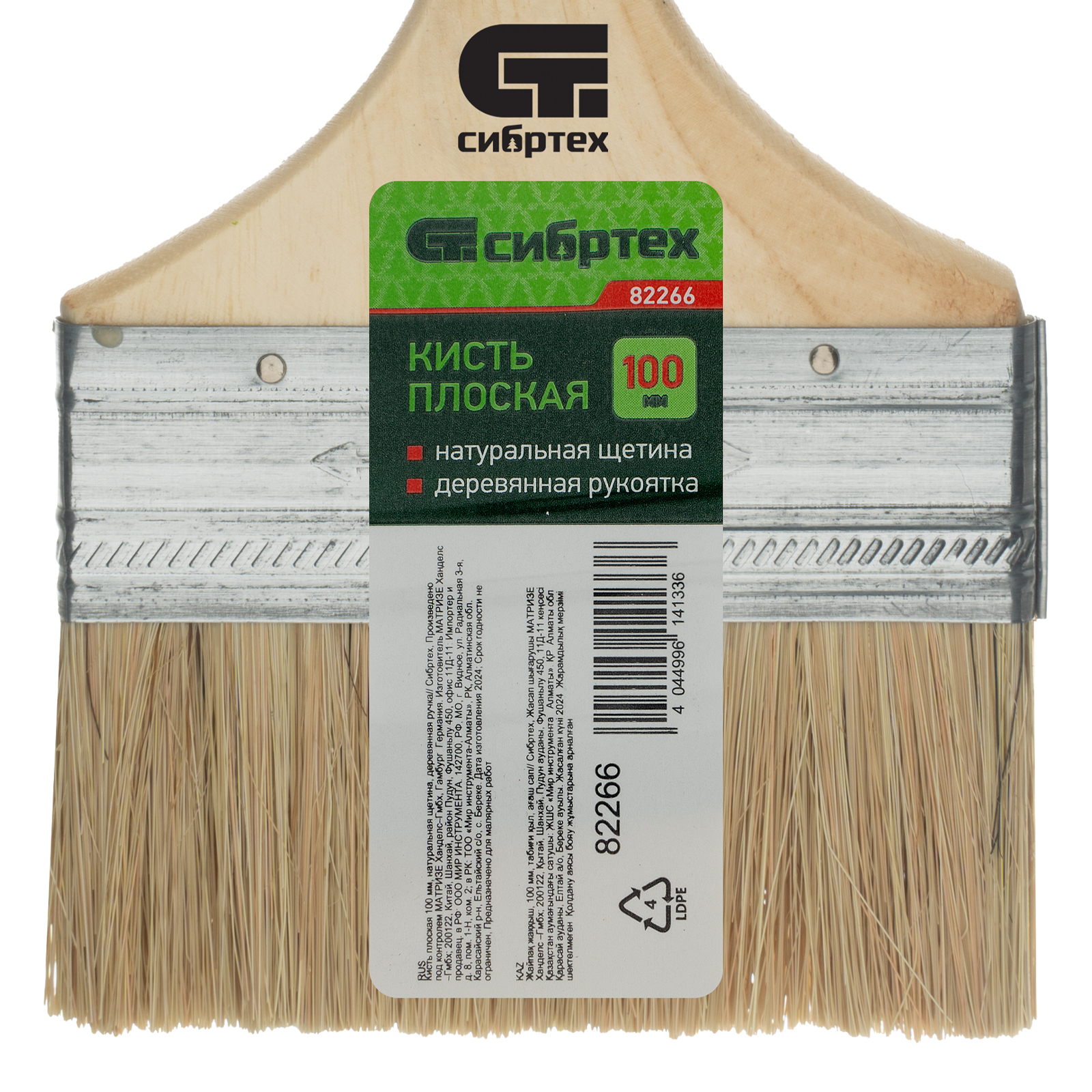 Кисть плоская 100 мм, натуральная щетина, деревянная ручка Сибртех