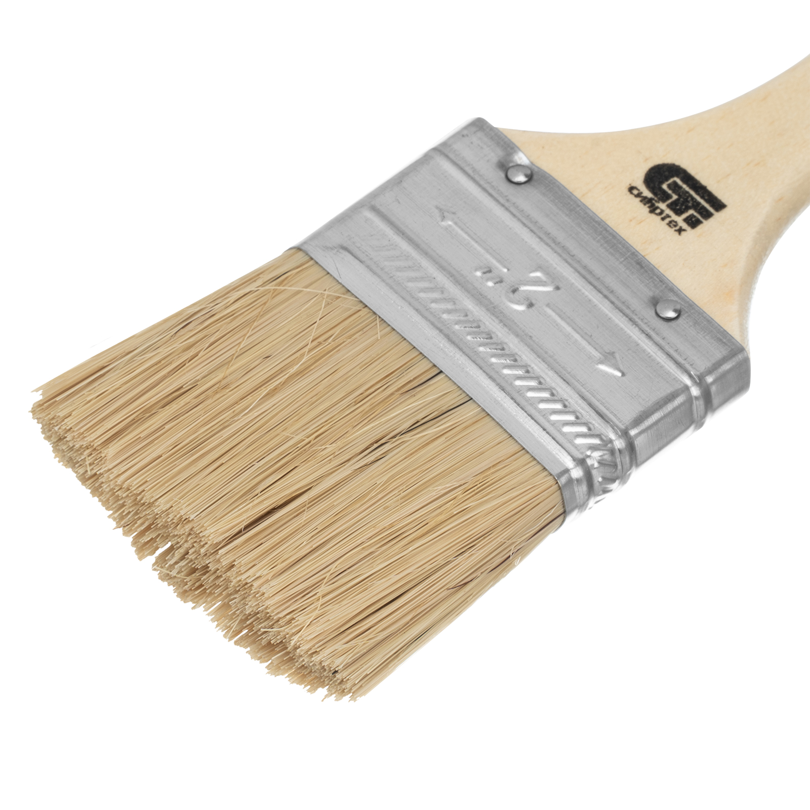 Плоская кисть Сибртех шириной 50 мм, с натуральной щетиной и деревянной ручкой, понадобится при окрашивании различных поверхностей. Ширина 50 мм делает инструмент оптимальным для окрашивания участков средней площади. Свиная натуральная щетина с добавлением искусственной подходит для большинства красок, в том числе масляных и на основе растворителей.