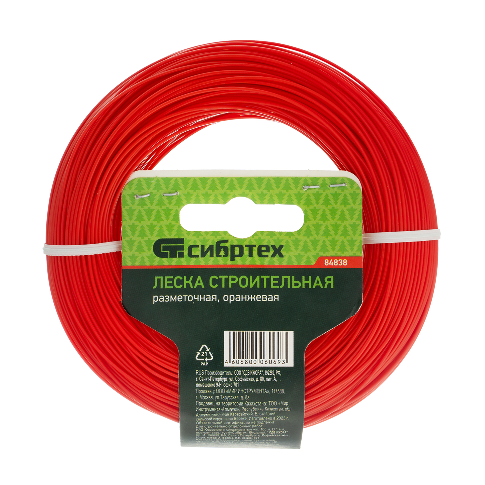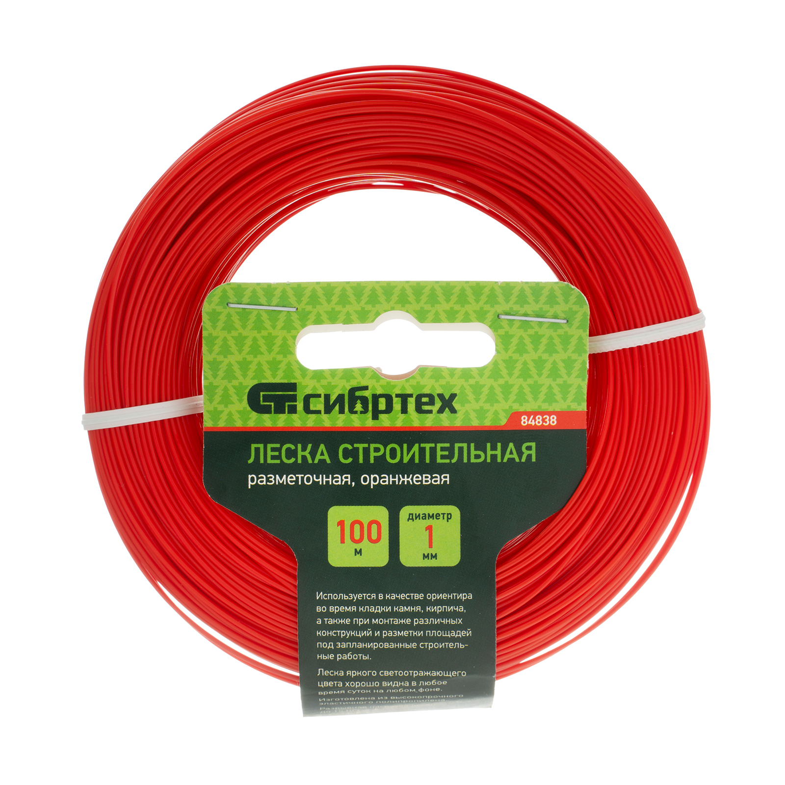 Леска строительная Сибртех, длина 100 м, диаметр 1 мм, оранжевого цвета, пригодится на строительной площадке как ориентир при укладке материалов, установке конструкций. Также она будет полезна для садоводов для разметки территории. Если леску натянуть, то получается идеально ровная линия, что повышает точность работы, а также позволяет проводить замеры с ее помощью.