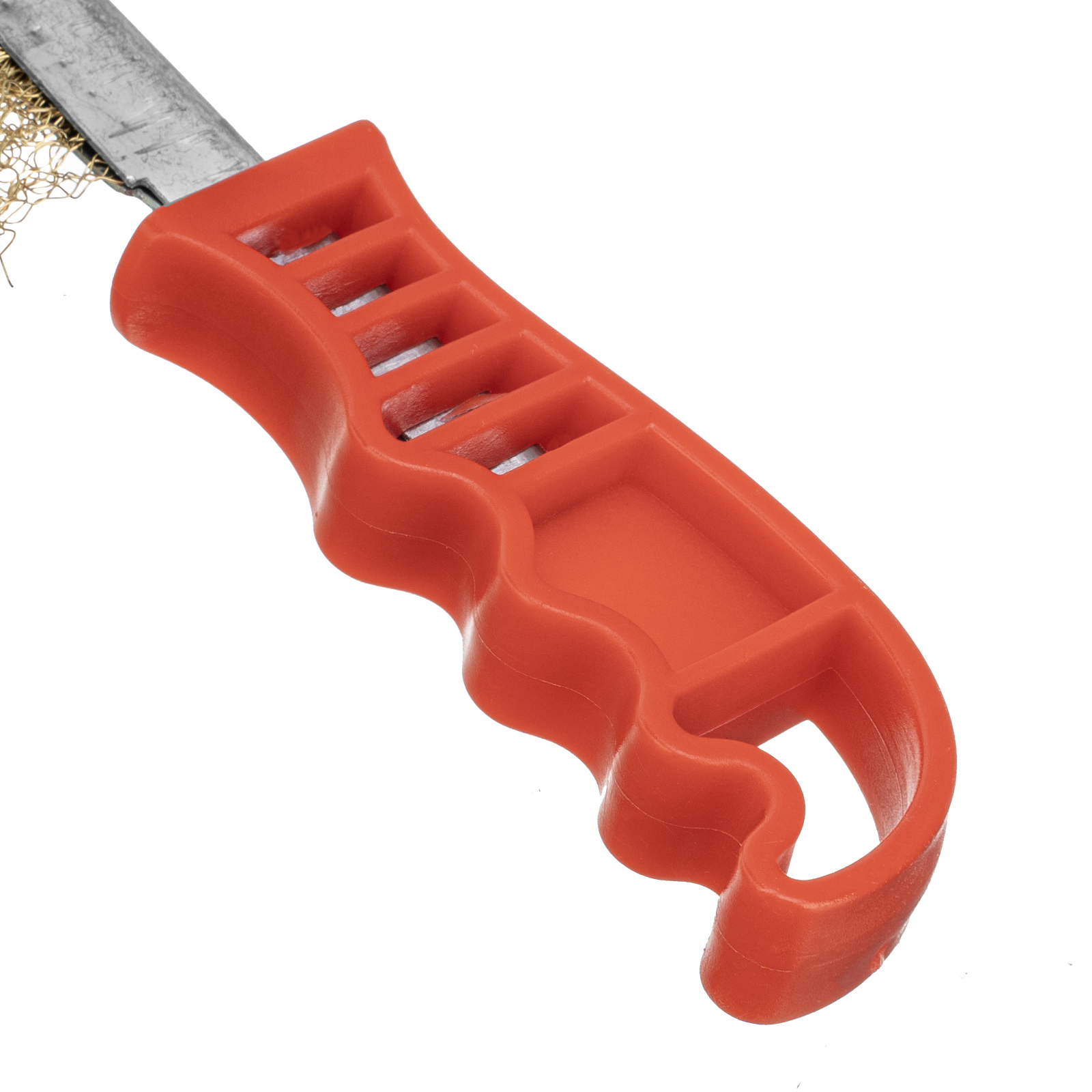 Металлическая латунированная щетка Matrix с пластиковой ручкой предназначена для ручного удаления загрязнений, ржавчины, остатков краски с металлических, деревянных и других поверхностей. Изогнутый корпус позволяет обрабатывать детали сложной формы. Металлическое основание повышает надежность инструмента. Щетка будет полезна во время строительства, ремонта, а также пригодится дома или в гараже.