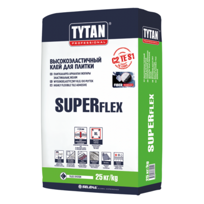 Высокоэластичный клей для плитки Tytan Super Flex S1 предназначен для надёжного приклеивания всех типов настенной и напольной облицовочной плитки: керамической, глазурованной, терракотовой, клинкерной, керамогранитной, мозаичной, цементной, а также плит из натурального и искусственного камня. Подходит для оснований различной сложности, включая деформируемые и нестандартные поверхности, такие как ОСП, гипсокартон и тёплые полы. Эффективен при монтаже плит большого формата, используется как внутри помещений, так и снаружи — на балконах, террасах, фасадах, в бассейнах и переходах. Обеспечивает высокую эластичность и долговечное сцепление даже при перепадах температуры и влажности.